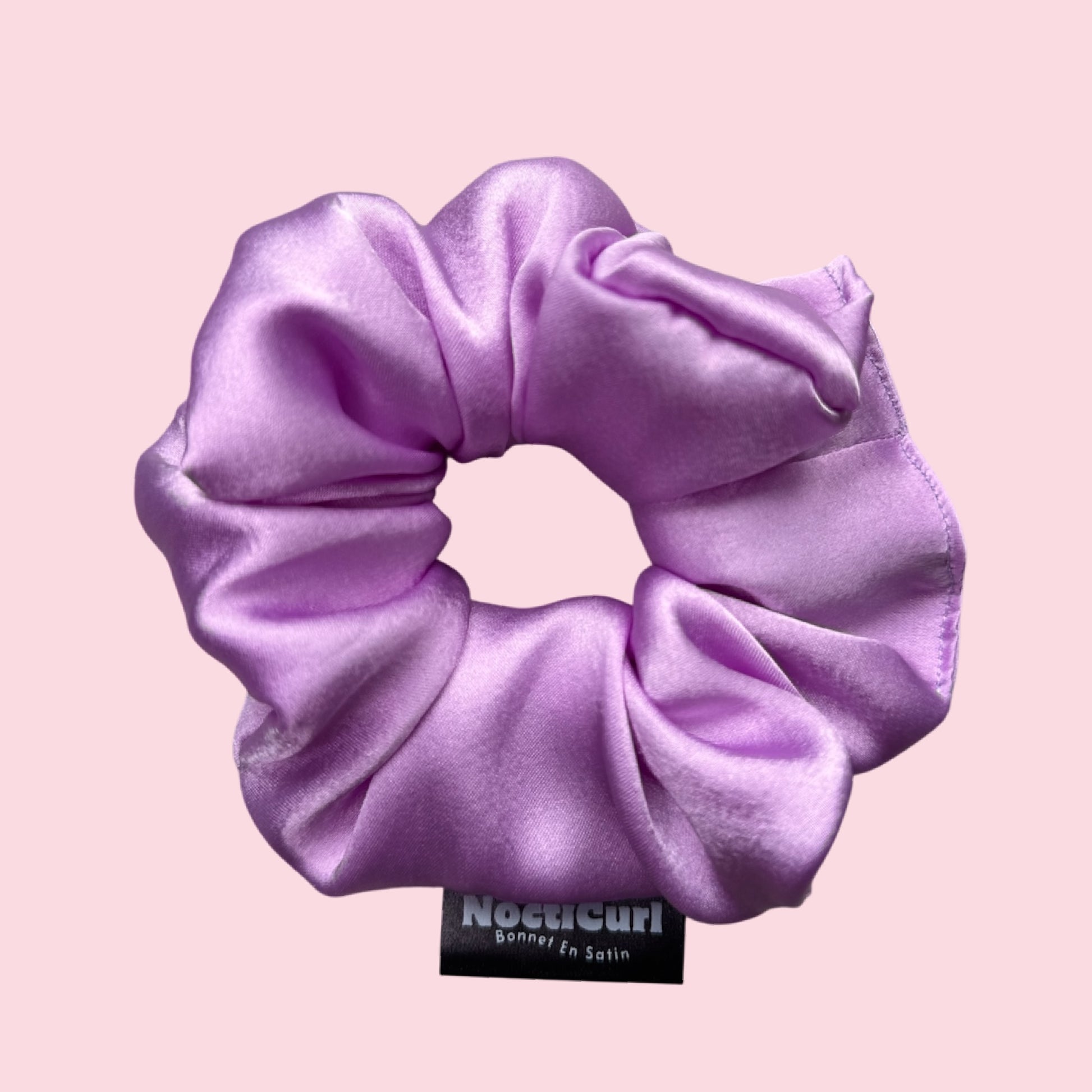 Chouchou en satin lilas au toucher soie, doux et délicat pour sublimer vos coiffures tout en préservant vos cheveux des cassures et frisottis.