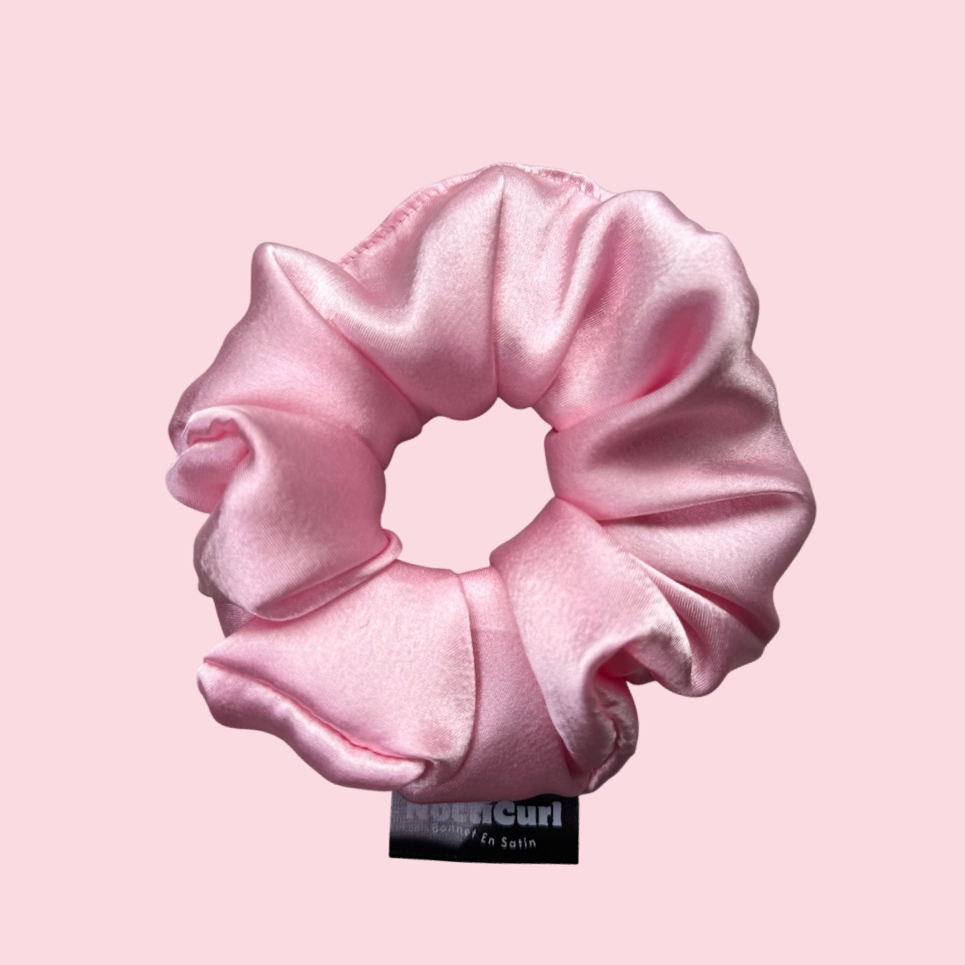 Chouchou Rose en satin au toucher soie, doux et délicat pour sublimer vos coiffures tout en préservant vos cheveux des cassures et frisottis.
